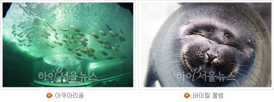 모세와 이스라엘 백성들이 두 갈래로 나눠진 홍해 사이를 걸었던 것처럼, 바다 생물과 함께 나란히 걷는 독특한 기분을 선사하는 곳, 바로 아쿠아리움이다. 서울 코엑스 아쿠아리움의 3배 크기이자 국내 최대 규모로 280여종, 총 3만 3,000여 마리의 해양 생물을 관찰할 수 있다. 특히 전시장이 360도 아쿠아돔으로 되어 있어 머리 바닷속을 지나는 신비한 느낌을 주며, 바이칼 물범, 러시아 흰고래 등 세계적인 희귀종도 만날 수 있다.