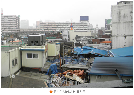 [서울시 하이서울뉴스] 을지로4가 '미싱집'들이 들어서 있는 작은 골목에 밝은 조명이 켜져 있다. <0.001%- 천분의 일>이라는 재개발에 대한 전시가 열리고 있는 곳. 안으로 들어가 옆쪽의 문을 열고 다시 한번 들어가서면 어두컴컴하고 좁은 계단이 나온다. 계단을 통해 3층에 오르면 비로소 작은 전시장이 나타난다. 이곳엔 작가가 상주해 관람객에게 설명을 해준다.
