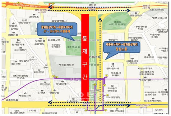 광화문→세종로 통제, 지난 행사 결과 토대로 도로 상황에 따른 교통대책 마련