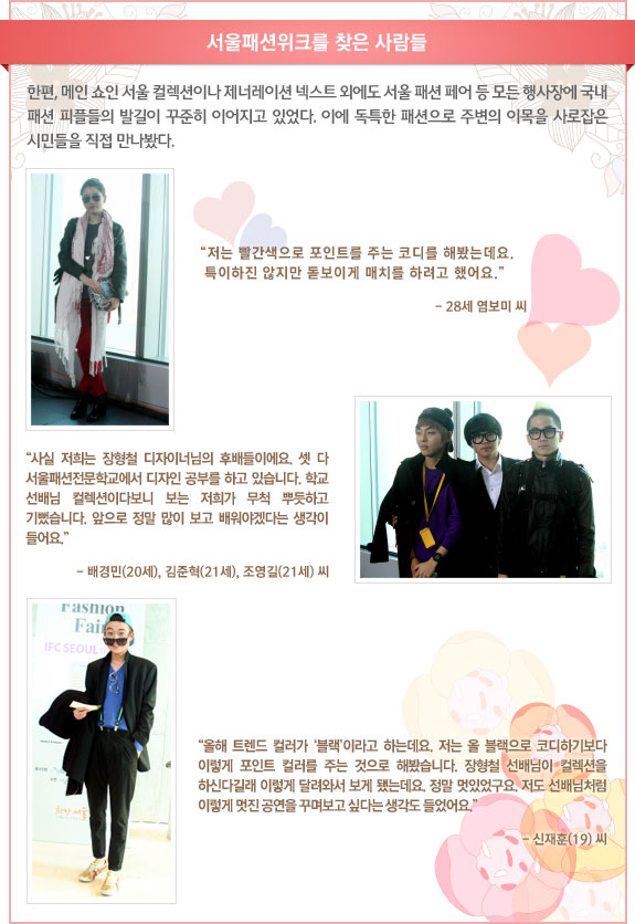 본 리포터가 방문한 화요일은 꽃샘추위로 날씨가 제법 쌀쌀했는데도 불구하고 패션피플과 시민들의 열띤 호응으로 발 디딜 틈이 없었다.