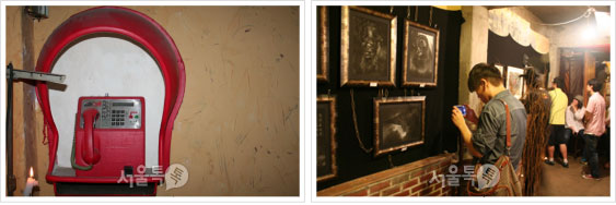 과거 다방과 사무공간이었던 이 지하 공간은 말 그대로 버려진 공간이었다. 또 습기로 곰팡이가 가득 폈고, 물도 차 있었다. 그랬던 이곳을 클럽 회원들이 직접 정리하고, 채워 넣어 지금의 모습으로 만들었다. 그러면서 이곳이 과거 다방이었음을 알리는 옛 모습 일부는 그대로 남겼다. 건물 위의 신정 다방 간판과 공간 출입구에 위치한 공중전화기가 그 예다. 예술과 비예술간 경계가 없는 이상을 지향한다는 공간 성격을 보여주는 대목이다.