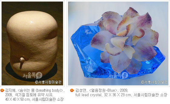 ![김지혜, [숨쉬는 몸 (breathing body)], 2009, 석기질 점토에 유약 시유, 40 X 40 X 50 cm, 서울시립미술관 소장(좌),김성연, [얼음정원-Blue], 2009, full lead crystal, 32 X 36 X 29 cm, 서울시립미술관 소장(우)](http://mediahub.seoul.go.kr/wp-content/uploads/2013/11/basic_img_000014030.jpg)