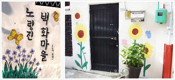 낡은 화분에 잘 자라나고 있는 분꽃과 함께 마치 하나인 듯 조화를 이루며 노랗게 피어난 해바라기. 벽화 속 풍경들은 언제 이 길이 그 비좁고 지저분했던 길이었냐는 듯 반문하는 듯 했다.