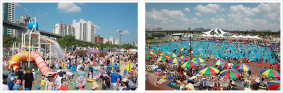 뚝섬 수영장에서는 수심 0.3~1.2m의 흐르는 물에 튜브를 타고 도는 유수풀과 시원한 물줄기가 쏟아지는 4m 높이의 아쿠아링을 즐길 수 있다. 여의도 수영장에서는 아쿠아링 이외에도 물대포와 스파이럴(물이 흐르는 소용돌이) 터널 등 대형 워터파크 못지않은 물놀이 프로그램으로 시민을 맞이한다.