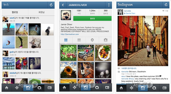 얼마전 페이스북이 인수한 인스타그램은 올해 가입자 수가 1억 명을 돌파한 인기 최고의 사진 공유 애플리케이션이다. 실시간으로 사진을 찍어 다양한 필터 효과를 낼 수 있고, 사진의 퀄리티도 높다. 사진으로 주고받는 커뮤니티이다 보니, 언어의 장벽까지도 가뿐하게 초월하는 앱이다. 게다가 인스타그램의 명성이 하늘로 치솟아, 세계 유명 셀러브리티나 유명 기업의 계정도 속속 열리는 중이다. 영국의 스타 셰프 제이미 올리버, 유명 디자이너 폴 스미스 등이 올리는 일상의 사진을 보는 재미와 더불어, 뉴스보다 빠른 현장의 사진을 볼 수 있다. 최근에는 비디오 기능까지 추가되어 짧은 동영상까지 즐길 수 있으니, 멀티미디어를 나누는 진정한 신세계로다!
