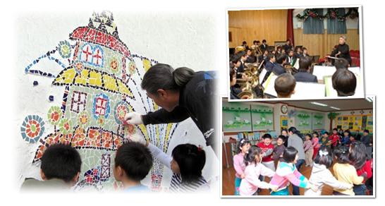예술로 상상하고 미래를 꿈꾸는 '어린이ㆍ청소년 Arts-TREE' '커다란 전지를 이용해 상상의 나라를 만들고 그 곳에서 사는 것들을 정해서 가면을 만들어 꾸미는 짧은 연극', '혼자 손가락으로 만들어보는 ㄱ,ㄴ부터 시작해서 온 몸으로 표현하는 한글, 짝과 함께 만들어보는 글자까지 몸으로 만드는 가나다라' 뿐만 아니라 서울시 5개 초등학교에서 초등교과 '즐거운생활'을 연계한 문화예술교육 프로젝트도 시범 운영할 계획이다. 문화예술교육을 통한 보다 다양하고 창의적인 학습 방법을 고민하기 위해 시작된 이번 프로젝트는 5개 시범학교의 초등학교 2학년생을 대상으로 오는 2학기 ‘즐거운생활’ 교과 수업시간부터 시행된다. 시범학교 별로 각 1명의 일반교사 5명과 연극, 무용, 음악, 시각예술 4개 장르별 전문예술교육가(Teaching Artist) 4명이 참여하는 이번 체험형 통합 문화예술교육 프로그램은 제한된 교육시설에서 진행되던 기존 문화예술교육수업의 틀을 넘어, 아이들이 신나게 뛰놀며 학습할 수 있는 다채로운 예술적 경험을 제공할 것으로 기대되고 있다. 그리고 2008년에 시작한 청소년 문화예술교육 중점학교 ‘청소년 비전 Arts-TREE'는 지난 2004년부터 2007년까지 4년에 걸쳐 서울 소재 105개 청소년 동아리를 지원했던 '청소년 문화벤처단'을 심화 발전시켰다. 지난해엔 순수기초 문화예술동아리 활동이 활발한 서울시내 소재 중ㆍ고등학교 15곳을 올해의 ‘청소년 문화예술교육 중점학교’로 선정했고, 올해는 24개 학교를 대상으로 25-30주 동안 교육을 진행하고 있다. ‘청소년 비전 Arts-TREE'의 가장 큰 특징은 음악, 연극, 뮤지컬 등 각 분야 PM(Project Master)으로 나선 저명예술가들과 그들이 이끄는 '프로젝트 그룹 전문강사'의 지도를 받는다는 점이다. 음악 분야 PM은 피아니스트 김대진이 맡고, 연극, 뮤지컬, 전통예술 분야에는 연극배우 조재현, 뮤지컬 배우 남경주, 장고 연주가 김덕수가 각각 해당 분야 PM으로 활동하고 있다. 특히 지난해 참가했던 저명 예술가 들은 대부분 올해도 활동을 계속하면서 문화예술을 매개로 그들의 능력을 사회에 나누는 기회를 갖고 있다.