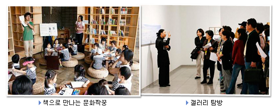 아이들과 가족을 위한 프로그램…‘문화예술탐방 프로젝트’, ‘문화가 있는 놀이터’ 가족과 함께 직접 미술, 연극, 문학, 건축, 디자인 등 다양한 문화예술을 찾아나서는, 전문가들과 함께 하는 탐방 프로그램도 있다. 서울이 가진 문화적 가치를 재발견하고 시민들이 일상생활에서의 문화예술 향유 기회를 늘리기 위한 이 프로그램은 하루 코스로 즐기는 문화 여행. 미술관, 박물관, 역사유적, 창작스튜디오, 홍대 앞, 서울연극센터를 요일별ㆍ시간대별로 편리하게 탐방하는 것이 가능하다. 아이들을 위해서는 무미건조한 놀이터를 문화 예술 공간으로 변모시킨다는 목표로 진행 중인 ‘문화 놀이 체험’이 진행된다. 서울 각 지역의 24개 문화놀이터에서 열리는 이 행사는 시민들이 몸담고 살아가는 구체적인 생활공간들을 문화적인 공간으로 재구성하고 그 안에 문화의 싹을 틔워 열매 맺을 수 있도록 시민과 예술가, 환경디자인 전문가, 기업, 행정기관 등 사회의 다양한 주체들이 함께 고민하고 협력한다는 점에서 의미가 크다. 7월에는 상계불암현대아파트의 동물원놀이터, 목동현대B아파트의 동물원놀이터, 서대문구 가좌동의 거꾸로놀이터에서 진행된다. 벽화 속에 숨은 우리별 찾기, 고구려 놀이 배우기, 고구려 사람들의 꿈과 사랑, 우리가 만드는 벽화 등으로 구성된 프로그램이 진행되며, 7세부터 10세까지 참여할 수 있다. 책과 더욱 가까워지는 공간, ‘책多방’, ‘책사랑’ 아이들과 시민들이 손쉽게 책을 접하고 가까워지게 하기 위한 프로그램도 있다. 서울문화재단이 운영하는 책을 주제로 한 문화짝꿍 프로젝트 ‘책으로 만나다’는 문화재단 청사 내 ‘책多방’, ‘책사랑’에서 지난 6월 17일부터 열리고 있다. ‘책多방’은 인문ㆍ문학ㆍ아동 분야 등 5,000여 권의 책을 갖추고 있어 시민 누구나 자유롭게 책을 읽을 수 있는 열린 공간. 이곳에서 어린이들을 위한 책 프로그램 ‘책, 놀이와 만나다’가 매주 수요일 오후 2시부터 두 시간 동안 진행된다. 아이들 눈높이에 맞춘 동화구연과 함께 그림책 만들기, 풍선동화놀이, 마술동화놀이 등이 진행되며 6세부터 10세 어린이들이 참여할 수 있다. 어른을 위한 프로그램 ‘책, 영화와 만나다’는 매월 넷째 주 화요일에 진행된다. 영화감독이나 영화 평론가들이 나와 책이 영상으로 해석되는 과정을 이야기하는데, 6월 첫 강의에서는 영화연구자 김성태 씨가 귀스타프 플로베르의 ‘보바리 부인’을 중심으로 ‘각색’에 대해 이야기를 나눴다. 오는 7월 28일에는 오동진 영화평론가가 영화 ‘우리들의 행복한 시간’의 송해성 감독과 만나고, 8월 25일에는 영화 ‘아내가 결혼했다’의 정윤수 감독이 강연을 이끌 예정이다. 이와 함께 ‘선유도’, ‘서래섬 등에서는 5월부터 10월까지 매주 토요일 오후 시인ㆍ문학인들과 만나 문학 작품을 공유하고 대화할 수 있는 프로그램이 마련된다. 시인 2~3명과 일반인 문학동호회 회원들이 참가한 가운데 자작시와 애송시 낭송, 시인과의 대화, 오페라ㆍ 가곡ㆍ가요ㆍ 클래식ㆍ국악 등의 공연 등으로 진행된다. 바쁘고 지친 생활 속에서도 시와 문학을 통해 여유를 되찾게 하는 것은 물론 문학에 대한 이해를 높이는 데에도 기여하고 있다.