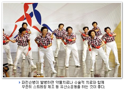 파킨슨병(Parkinson’s disease) 은 대표적인 노인성 질병 중의 하나로, 신경퇴행성 질환 중에서는 미국의 레이건 대통령이 앓았던 알츠하이머병(Alzheimer’s disease) 다음으로 흔한 병이다. 노령에서 주로 발병하는 파킨슨병의 발병 연령은 평균 55세경으로 추정되는데, 40세 이전에도 발병이 가능하다. 유병률은 대개 65세 인구의 1% 정도이며, 우리나라의 경우 현재 대략 5만 명에서 10만 명의 환자가 있는 것으로 추정된다. 하지만, 최근 급속하게 고령화되고 있고 향후 20년 이내에 65세 인구가 전체 인구의 20% 이상이 되는 초고령화 사회로 진입할 것으로 보여 파킨슨병의 유병률은 3배 이상 증가할 것으로 예상된다. 파킨슨병의 증상은 어떠한가? 권투선수 무하마드 알리, 배우 마이클 제이 폭스 등이 파킨슨병에 걸렸다는 사실이 알려져 꽤 유명한 편인데도 불구하고 많은 사람들이 파킨슨병을 치매나 중풍과 같은 것으로 생각하는 경향이 있다. 파킨슨병의 특징은 운동증상이 서서히 발생하여 평생 계속 진행한다는 것이고, 말기가 되면 거의 움직일 수 없는 상태로까지 가게 된다는 데 있다. 이는 기억장애가 먼저 생긴 후 점차 인지능력을 모두 상실하게 되는 알츠하이머 병과는 다르다. 파킨슨병은 이와 달리 소수의 예외적인 경우를 제외하곤 기억장애를 비롯한 치매증상은 병이 상당히 진행하기 전에는 거의 나타나지 않는다. 흔한 운동 증상으로 자신도 모르는 사이에 가만히 있거나 걸을 때 손발이 떨리거나, 동작이 점차 느려지고 몸이 앞으로 굽어지면서, 걸을 때 다리를 끌게 되는 증세를 들 수 있다. 또한 사지가 굳는 느낌이 들며, 말소리가 작아지고 불분명해지거나 무표정해지고, 입에서 침이 흐르는 등의 증상이 동반될 수 있다. 파킨슨병은 이러한 운동증상 외에도 많은 비운동증상을 유발할 수 있는데, 쉽게 육체적 피로를 느끼거나, 우울감이나 불안 등 정서적인 문제가 생길 수 있고, 장운동이 감소하게 되기 때문에 만성적인 변비에 시달리는 경우가 많다. 또 낮에 갑자기 심한 졸음이 와 불가항력적으로 자버린다든지 기분 나쁜 꿈을 생생하게 꾸거나 자다가 고함을 지르면서 옆 사람을 때리거나 발버둥을 치는 등의 수면장애가 있을 수도 있다. 냄새를 잘 못 맡으며, 자율신경계의 장애로 인해 낮보다 밤에 특히 소변을 자주 보거나, 땀을 심하게 흘릴 수 있으며, 시력이 감퇴하거나 팔다리가 시리고 저리거나 통증을 느끼는 등의 감각증상도 발생할 수 있다. 파킨슨 병은 왜 생기며 발병 위험 요인은 무엇인가? 파킨슨병은 1817년 제임스 파킨슨이라는 영국인 의사에 의해 처음 기술되었으며, 원인이 밝혀지지 않은 채 난치성 질환으로 알려져 있다가 100년이 훨씬 지난 1960년대에 이르러 파킨슨병 환자의 뇌기저핵 (=인간의 움직임, 즉 운동능력을 조정하는 역할을 하는 뇌의 한 부분) 에 도파민이 결핍되어 있는 것이 발견되고, 이 도파민을 외부에서 환자에게 투입함으로써 환자의 증상이 호전될 수 있음이 알려지면서 치료의 길이 열리기 시작했다. 이 시기에 개발된 레보도파 제제는 파킨슨병 환자의 뇌에서 부족한 도파민을 대체함으로써 증상을 획기적으로 개선시키기 때문에 오늘날까지도 파킨슨병 약물치료의 근간이 되고 있다. 그렇다면, 왜 기저핵(위에서 설명)에 도파민이 결핍되는가? 파킨슨병에서는 뇌 기저핵, 그 중에서도 ‘흑질’이라는 부위에 존재하는 도파민을 생성하는 신경세포가 점차 퇴행적으로 사멸함으로써 도파민이 결핍되는 것으로 알려져 있는데, 실제로는 뇌신경계의 다른 여러 시스템에 있는 신경세포들도 함께 퇴행적으로 변성되어 간다. 안타깝게도 구체적으로 어떤 기전에 의해서 사멸하는가는 아직까지 명료하게 규명되지 못한 상태이다. 가능한 가설로서 산화적 스트레스에 취약한 신경세포의 독성물질 제거능력 상실 및 파킨슨병의 특징적인 병리학적 소견으로 알려진 루이소체의 침착 등 세포내에 이상 물질이 축적됨으로 인해 촉진되게 되는 세포사멸, 미토콘드리아의 기능부전 등 여러 기전들이 있고 이에 대한 연구가 활발히 진행되고 있다. 또한, 최근 유전학의 발전으로 전체 파킨슨병 환자의 5~10%에 해당하는 유전성 파킨슨병의 원인 유전자가 밝혀졌으며, 이들 유전자 연구는 파킨슨병의 발병기전을 이해하는 데에 획기적인 발전을 가져왔다. 하지만, 아직까지는 전체 파킨슨병의 극히 일부만을 설명하는 한계가 있다. 실제 대부분의 경우 파킨슨병은 유전적 질환이라기보다는 유전적 소인과 환경적 요인이 상호 작용함으로써 발생하는 병으로 보는 것이 타당하다. 대표적인 환경적 위험 인자로 MPTP (1-methyl-4-phenyl-1,2,3,6-tetrahydropyridine) 라는 독성물질을 들 수 있으며, 제초제나 살충제와 같은 농약도 중요한 위험인자로 보고되고 있다. 이 외에도 시골에 거주하는 것, 우물물을 장복하는 것, 머리 부분 외상에 취약한 직업에 종사하는 것 등이 파킨슨병의 발병위험을 높이는 요인으로 거론되어 왔다. 특이하게도 커피의 섭취가 파킨슨병 발병 위험도와 역 상관관계를 보이는데, 실제 커피가 파킨슨병의 위험도를 낮추는지는 불분명하며, 이에 대해선 과학적인 역학적 