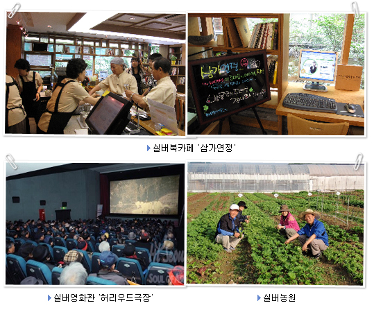 여유롭게 문화생활을 즐기고 싶다면? 실버영화관, 삼가연정, 실버농원 서울시 종로구엔 국내 최초의 ‘실버영화관’인 허리우드 극장(☎02-3672-4231)이 있다. 주로 어르신들이 좋아하는 국내외 고전영화를 상영하는 이곳은 만 57세 이상은 관람료가 2000원이며, 표 한 장으로 마지막 회 차인 4회 차까지 관람할 수 있다. 주변 음식점이나 생필품 가게에 표를 보여주면 50%까지 할인을 받을 수 있다. 실버영화관은 모든 것이 어르신들의 눈높이에 맞춰져 있다. 영화 상영 시작 전 김 대표의 안내는 물론이고 영화관 입구의 중앙 계단에는 무릎이 약한 분을 위한 손잡이가 설치 돼 있다. 커피를 찾는 분들의 주머니를 생각해 커피요금은 300원을 유지하고 있다. 영화 스케줄이 적힌 종이의 글씨는 단순하고 큼직하다. 눈이 좋지 않은 분들을 위해서다. 김 대표는 영화관 로비에 DJ부스를 만들어 LP판을 틀 예정이다. ‘별들의 고향’ 같은 옛 영화 음악을 틀고, 엿치기 같은 놀이판도 준비 중이다. 기다리기 지루한 어르신들을 위한 또 하나의 배려이다. 실버영화관은 한 달 관객 수가 4000~6000명을 유지하고 있으며, 지난해 6만 명을 넘으며 관객은 점차 늘고 있는 추세다. 종로구 일대의 터줏대감은 물론이고 지하철을 이용할 수 있는 수도권 등에서도 많이 찾아온다. 앞으로는 서울시의 재정지원을 통해 어르신들의 취향에 맞는 보다 다양한 영화와 다채로운 서비스를 제공할 예정이다. 아내와 또는 친구들과 영화를 보고 차 한 잔을 즐길 카페를 찾는다면, 삼가연정(☎02-720-2330)이 제격이다. '세 가지(책과 차, 사람) 아름다움이 어울리는 장소'라는 뜻의 삼가연정(三嘉連亭)은 60세 이상 어르신 16명이 운영하는 실버 북 카페로 노년층에게 휴식과 소통의 공간을 제공하고 일하는 노인에 대한 새로운 모델을 제시하고자 작년 8월 개소하였다. 종로구 경운동에 위치하고 있는 삼가연정(3호선 안국역 5번출구로 나와 1분 거리)은 시중 보다 저렴한 가격의 커피, 전통차와 함께 삼가연정에서만 맛볼 수 있는 전(全)두부와 어르신들이 직접 만든 호박 케익, 영양 갱, 쿠키 등을 함께 판매하고 있으며, 카페 곳곳에는 책꽂이를 설치하여 편안하게 책을 읽을 수 있는 장소도 마련해 두고 있어 주변의 직장인들과 학생들에게도 큰 인기를 끌고 있다. 또한, 바로 옆건물에 서울시 어르신 상담센터가 위치하고 있어 무료로 상담을 받을 수도 있다. 어르신상담센터(☎02-723-9988)는 어르신들의 건강하고 행복한 노후생활을 위해 황혼 이혼ㆍ재혼문제, 가족갈등ㆍ학대, 노인의 우울ㆍ성 ㆍ질병, 재산상속 등 어르신들이 직면하고 있는 다양한 문제에 대해 전문상담원이 종합적으로 상담해 주고 문제해결을 지원하며, 우울ㆍ자살, 치매 등 건강, 소비자 피해 예방교육을 실시한다. 24시간 전화상담도 열려있다 친구들과 삼삼오오 모여 자연을 벗 삼아 즐기고 싶은 분들에겐 실버농원이 있다. 실버농원은 농업기술센터가 65세 이상의 노인들의 여가선용과 소일거리 제공을 위해 지난 2008년부터 운영하고 있는 것으로 참가자들은 무공해 채소를 손수 가꾸면서 친분도 쌓고, 더불어 건강도 챙길 수 있는 장점이 있다. 매년 4월 초순 개장하며 올해는 지금까지와는 달리 5인 이상으로 이뤄진 팀으로 지원가능하다. 2월 22일부터 농업기술센터 홈페이지를 통해 신청을 받을 예정이며 한 팀당 약 10평 정도의 땅이 제공되고, 모든 비용은 무료이다.(단, 고추나 토마토 등 일보 종자나 묘종에 관해선 개인 부담) 문의 : 농업기술센터 도시농업팀 ☎ 02)459-8993 이 모든 것이 건강해야 가능하다? 자치구별 치매지원센터 나이가 들면서 찾아오는 건강 걱정 중 하나인 치매. 그러나 조기에 발견하여 적절히 치료하면 진행을 지연시키거나 증상을 호전시킬 수 있으며 일부 치매는 예방도 가능한 질병으로, 치매환자의 경우 보호자의 절대적인 돌봄을 필요로 하기 때문에 가족들에게 큰 부담을 주게 되는 질환으로 사회적 차원의 대책이 필요하다. 이에 서울시는 치매예방과 치료ㆍ관리ㆍ환자 보호를 위한 종합적이고 체계적인 통합관리 시스템을 구축하고, 올해부터 25개 자치구 치매지원센터를 중심으로 모든 시민들에게 본격적인 치매통합관리서비스를 제공할 계획이다. ○ <예방, 조기발견> 치매지원센터에서 60세 이상 노인들을 대상으로 무료로 선별검진,