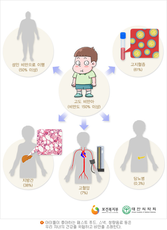 또 요즘 우리 아이들은 초등학교 전부터 여러 군데의 학원을 다니는 경우가 많고 친구들과 어울려 뛰어 놀 시간과 공간이 모자란 것이 현실이다. 비만을 예방하고 건강한 몸과 마음을 갖기 위해서 규칙적인 운동이 큰 도움이 될 것이다. 일찍 자고 일찍 일어나는 규칙적인 생활리듬을 가지는 것이 좋다는 것은 누구나 아는 사실이다. 요즘 아이들은 잠이 드는 시간은 너무 늦다. 수면 부족은 면역력을 떨어뜨리고 학습 능력 저하를 유발할 뿐 아니라 키 성장을 감소시키고 비만을 초래할 수도 있다. 아이들이 취침시각이 늦는 것은 부모님의 책임이 크고 TV, PC, 오락기들의 영향이 크다. TV, PC 게임 등은 정해진 시간 동안만 하도록 하는 절제하는 습관을 들여 주어야 한다. 또 엄마 아빠는 늦은 시간까지 거실에서 TV를 보면서 아이만 일찍 자라고 한다면 아이들이 일찍 잠자리에 들 수는 없다.