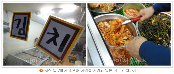가족 구성원과 소비 형태가 변하고 온라인쇼핑몰이 활황기를 맞고 있는 요즘, 서울의 한 지역에서 30년 동안 김치를 직접 담가 판매해 온 김치가게가 있다. 온라인쇼핑몰이 대세인 요즘에도 다른 곳에 눈 돌리지 않고 가게에서만 김치를 팔고 있다고 한다. 그 연륜만큼이나 김치맛이 좋다는 입소문을 듣고 직접 그 가게를 찾아가 보았다.