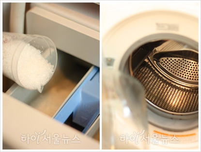 한 달에 한 번 정도 이런 방법으로 청소하면 세탁조의 스테인레스 부분의 더러움과 물 얼룩은 물론, 고무패킹 틈새의 묵은 때들을 효과적으로 제거할 수 있다. 손이 잘 닿지 않는 구석은 스펀지를 뾰족하게 잘라 베이킹소다나 구연산을 묻혀 닦아낸다.