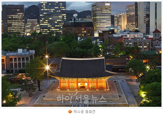 [서울시 하이서울뉴스] 덕수궁은 서울의 고궁 가운데 유일하게 상설 야간개장(월요일 휴무)을 하고 있다. 개장 시간이 밤 9시까지로 다소 제한적이기는 하지만 낮 시간에 볼 수 없는 궁궐의 또 다른 모습을 볼 수 있는 메리트를 선사해 준다. 낮에 보는 고궁과 달리 밤에 보는 고궁은 빛의 미학이라 할만큼 전혀 다른 아름다움을 선사해 주고 있으며 빌딩숲에 둘러싸인 아늑하고 고즈넉한 분위기는 가히 비경에 견줄만 하다.