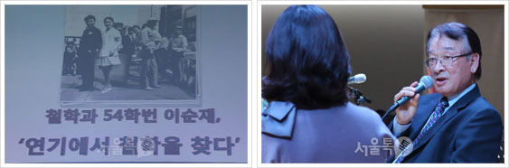 서울대학교 연극동아리 총동문회장인 이순재 씨는 현재 대학동문들과 함께 막바지 연극 준비로 한창이다. 이날 시민청 토크콘서트도 연극 총연습 중 짬을 내어 찾은 것이라 한다. 관악극회 두 번째 정기공연으로 선보이는 연극은 아서밀러의 '시련'. 이번 작품에서 그는 연출을 맡았다. 지난 88년 '가을소나타' 연출 이후, 25년 만에 다시 연출가로 나선 것이다. 9월 5일부터 세종문화회관에서 선보일 예정이라 하니, 직진 순재의 계속되는 도전에 박수를 보낼 겸 한 번 찾아봐도 좋겠다.