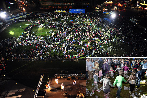 개막식의 대미를 장식한 것은 바로 모두가 함께하는 '강강술래'. 풍물패의 신나는 연주에 맞춰 행사에 참여한 모든 시민과 외국인은 동그랗게 원을 그리며 강강술래를 즐겼다.