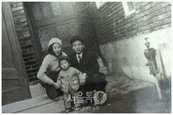 1970년 어느 겨울날, 처음으로 장만한 집(수유동)에서 촬영한 사진, 사진 오른쪽에 수동 물펌프가 보인다.