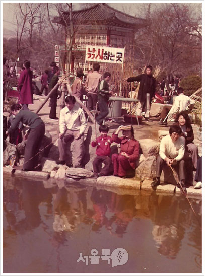 1970년대 창경궁 모습이다. 당시에는 궁이 아닌 놀이공원 같은 곳이었다. 놀이기구에 동물원까지 있었으니... 게다가 연못에서는 낚시까지 할 수 있었다. 고궁에서 낚시라니, 지금은 상상할 수 없는 '용감한' 낚시 사진이다.