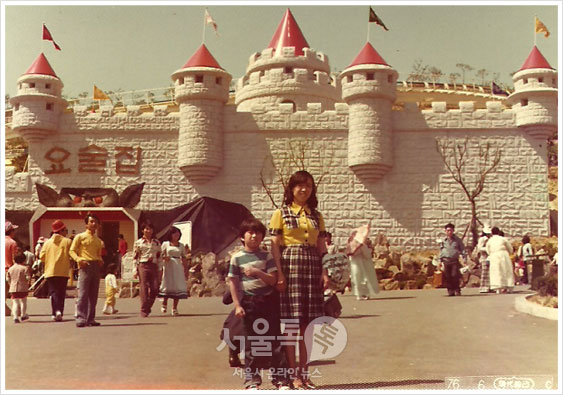 1976년 용인자연농원(지금 에버랜드)에서 찍은 사진, 곱게 하얀 한복을 차려 입고 나들이에 나선 어르신 모습이 보인다.
