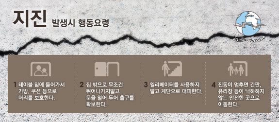 | [서울톡톡] 지진, 태풍 등으로 인한 재해발생시 인간은 얼마나 오래 생존할 수 있을까. 물론 개개인이 처한 상황에 따라 달라지겠지만, 전문가들은 지진 등 재해로 가옥이 부서져 고립된 경우 72시간 정도가 지나면 생존률이 크게 떨어진다고 보고 있다. 서울톡톡에서는 <여러분 '안전'하십니까?> 두번 째 기사로 자연재해 발생시 꼭 필요한 행동요령을 안내한다. |