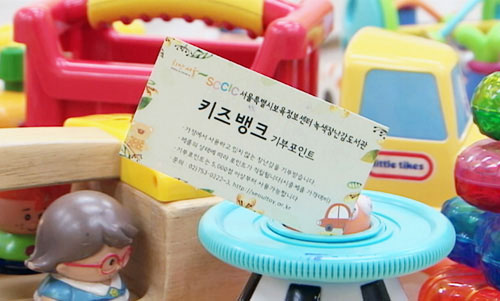 "서울시 키즈뱅크를 통하여 집안에 방치되어 있는 장난감을 기증하거나 재사용함으로써 환경오염 문제해결과 보육비용 절감 등 일석이조 효과를 기대하고 있습니다." (신미영 서울시 키즈뱅크 교사)