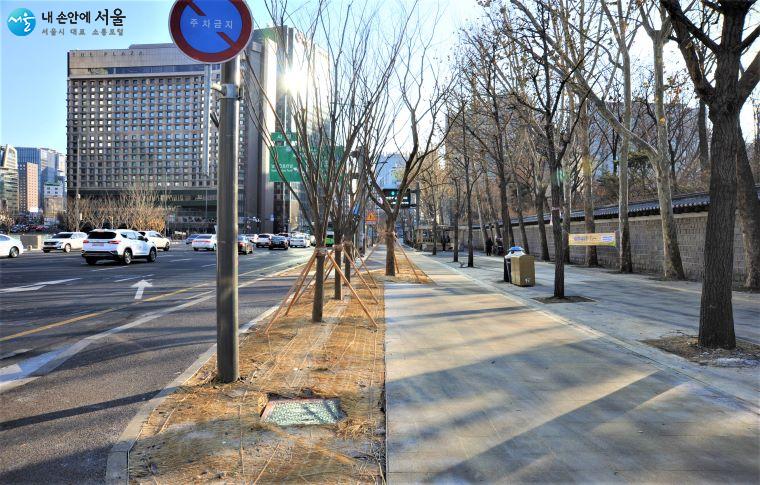 소나무와 느티나무 등을 식재한 북창동 쪽 보행로 ⓒ조수봉