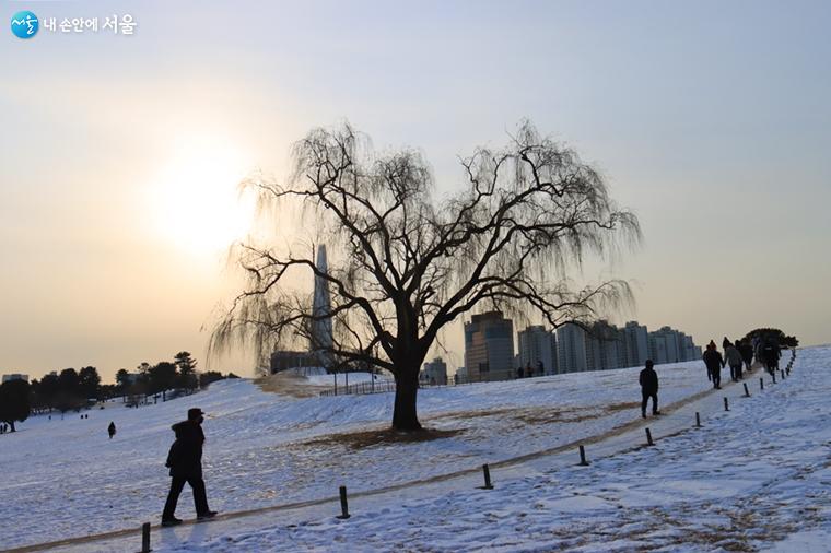 올림픽공원은 봄, 여름, 가을 뿐만 아니라 겨울의 눈 쌓인 설경 또한 아름답다. 마치 겨울 왕국에 들어온 느낌이다. 서울에 하얗게 눈 내리던 날, 올림픽공원에서는 가족 연인 친구 모두 동심으로 돌아가 눈사람도 만들고 눈싸움도 하며 즐거운 시간을 보내는 것을 볼 수 있었다. 코로나19로 일상이 답답한 요즘, 공원에 나와 아름다운 경치 보며 힐링의 시간을 가져본다. 뽀드득 눈 밟는 소리 만으로도 기분이 상쾌해지는 것을 느낄 수 있다.