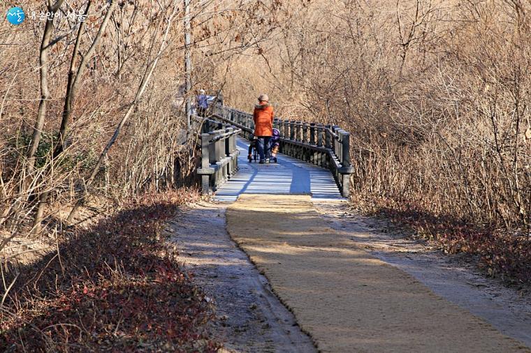 길동생태공원을 찾은 아빠와 아이가 호젓하게 산책을 즐기고 있다 ⓒ한춘석
