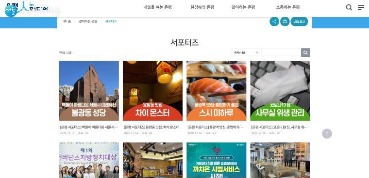 '서포터'즈 화면, 직접 현장 곳곳을 누비며 재미와 감동이 있는 은평구의 숨겨진 이야기를 게시한다. ⓒ박찬홍