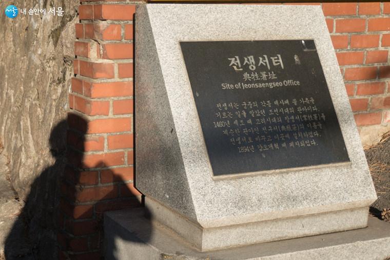 영락보육원 입구에 있는 전생서터 머릿돌. 전생서는 궁중의 각종 제사 때 쓸 가축을 기르는 일을 맡았던 조선시대 관아다 Ⓒ김인수
