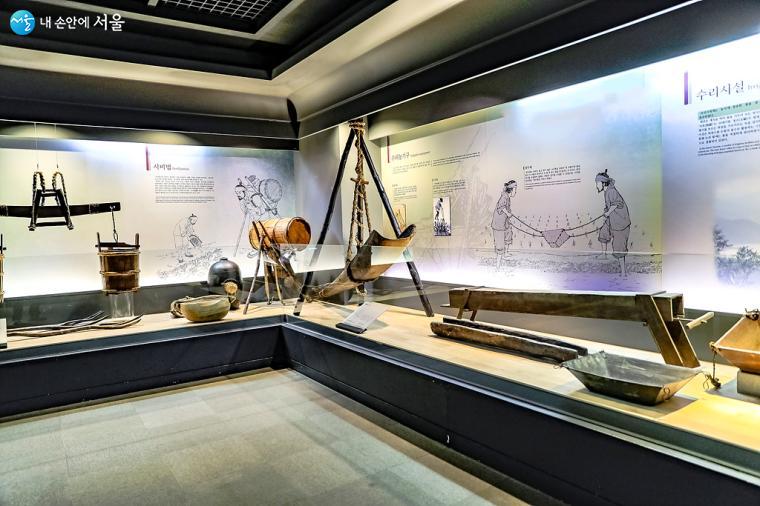 농업의 체계적인 경영이 시작된 '조선시대'의 다양한 농기구들이 전시되어 있다. ⓒ박우영
