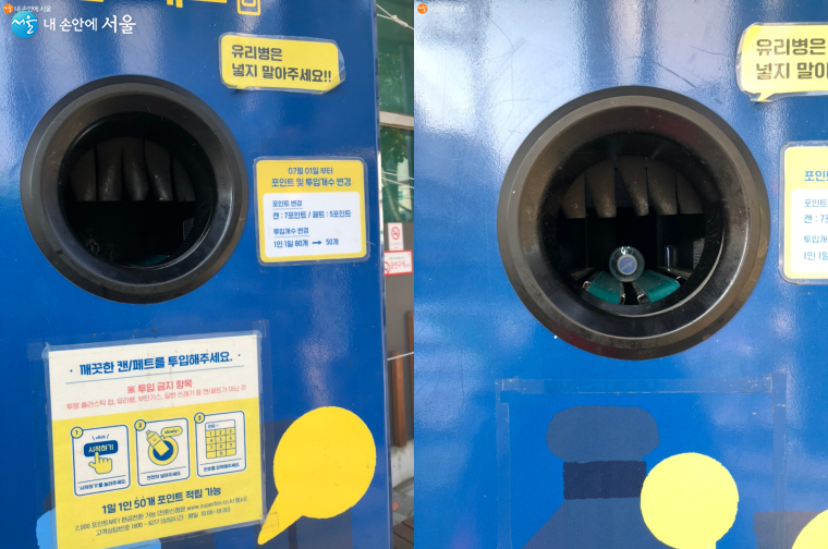‘유리병, 투명 플라스틱 컵, 부탄가스, 일반 쓰레기’ 등 캔과 페트가 아닌 용품은 넣을 수 없고, 또 캔과 페트병 역시 내용물을 깨끗이 비우고 뚜껑과 비닐 상표를 제거한 상태여야 한다. 1인당 최대 캔·페트병 총 50개까지 수거가 가능하며, 포인트는 캔 7점, 페트병이 5점을 제공한다. 일요일을 제외한 주6일 수거하며 2,000점 이상이 되면 현금으로 전환해 사용할 수 있다.