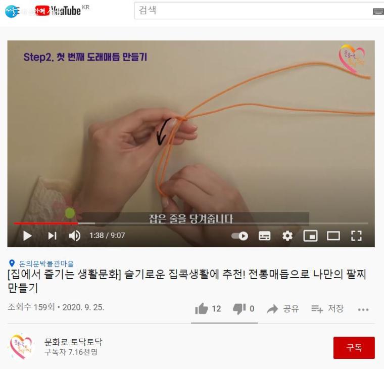 전통매듭으로 나만의 팔찌 만들기 영상 ⓒ문화로 토닥토닥 유튜브