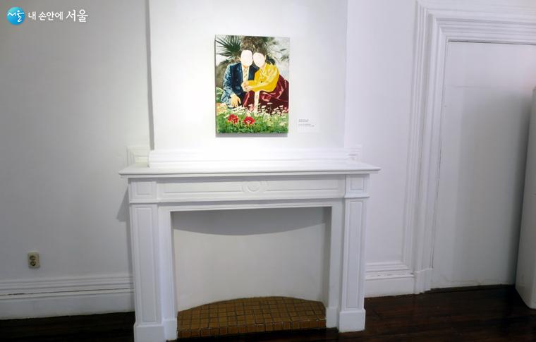 구건물의 고전적인 벽난로와 그 위에 전시된 작품이 조화롭다. ⓒ박칠성