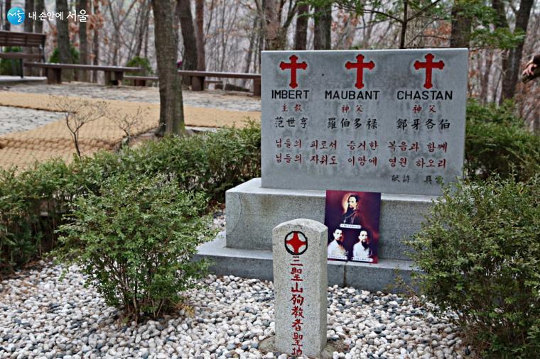 그런데 지금 ‘삼성산 성지’는 불교가 아니라 천주교의 성지다. 1831년 기해박해 때 새남터에서 순교한 앵베르 주교와 모방 신부, 샤스탕 신부의 시신이 58년 동안 이곳에 묻혀 있었다. 천주교 박해가 끝나고 1901년 명동성당으로 유해가 옮겨진 후 방치되다가1981년부터 옛 묘역을 정비하기 시작해 1989년에는 명동성당에서 유해 일부를 모셔와 안치했다. 세 순교자가 1984년 천주교 성인이 되었으므로 또 하나의 의미로 ‘삼성산’이 되었다.