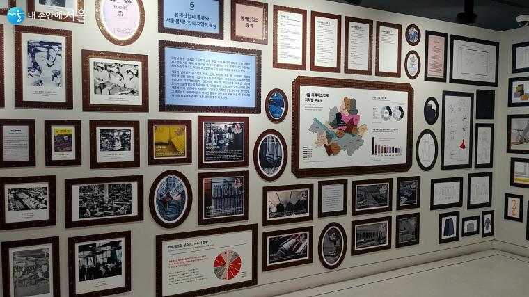 봉제역사관 2층 상설전시실의 벽면 사진전시와 해설들 ⓒ최은영