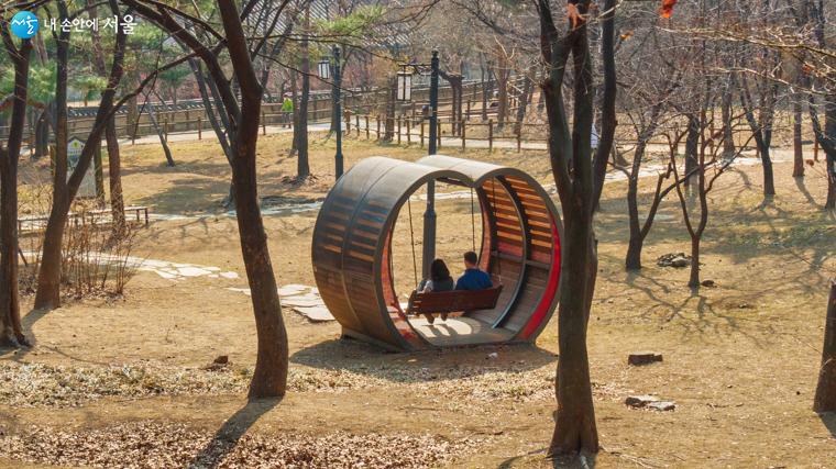 공원 내 산책로를 걷다 보면 로맨틱한 그네 쉼터도 만날 수 있다 Ⓒ오세훈