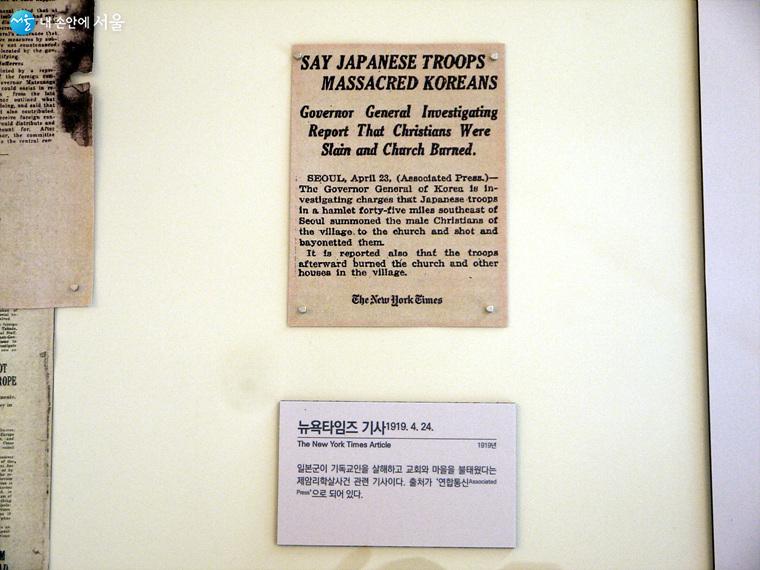 출처가 AP통신으로 나와있는 제암리학살사건에 관한 뉴욕타임스 기사 ⓒ최윤영