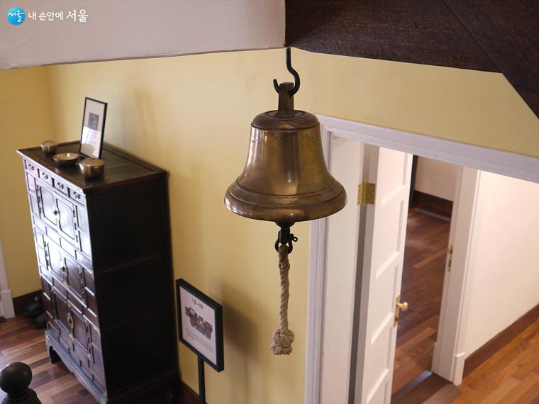 2층으로 올라가는 계단에 걸려있는 하인을 부를 때 사용한 종 ⓒ최윤영