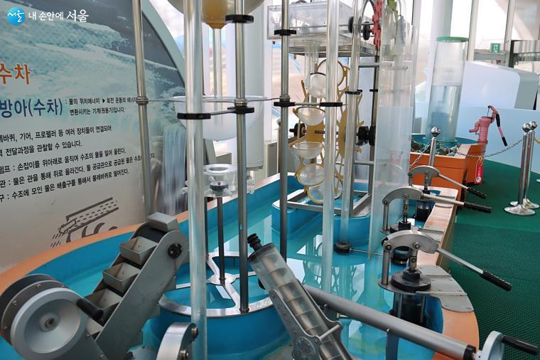 한강물이 여과되어 수돗물로 내보내는 과정이 자세히 전시되어 있다 ⓒ정향선