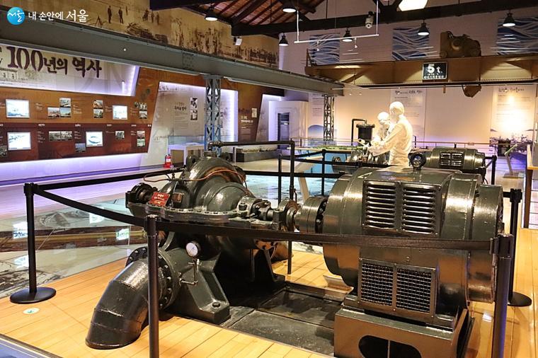 모래층과 자갈층에 한강물을 통과시켜 불순물을 걸러내던 친환경 방식의 정수시설 내부 한강물을 뚝도수원지 까지 끌어올리는 역할을 하던 제1정수장 취수펌프실에 별관 전시실을 꾸며놓았다. 별관은 뚝섬에서 시작된 아리수, 안전한 물 아리수, 추억의 물 아리수, 서울의 수돗물 아리수 등의 테마로 구성되어 있다 ⓒ정향선