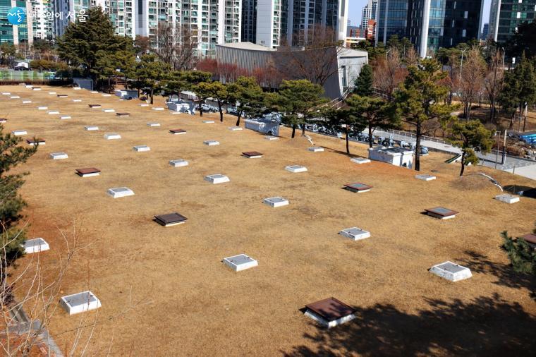 완속여과지 외부-오래전 전기 공급이 안되던 시절 자연채광을 위해 완속여과지 위에 창을 만들어 놓았다. 사람 손으로 직접 문을 열고 닫았다고 한다 ⓒ정향선
