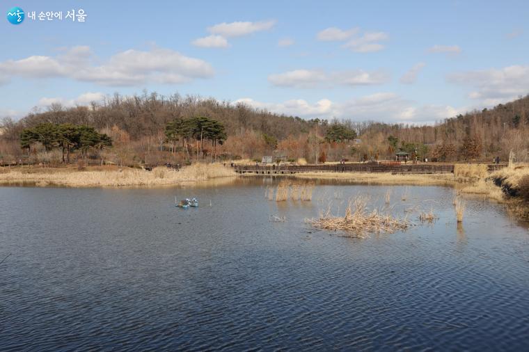 수목원의 수많은 초목마다 물이 오르기 시작했다. 머지않아 가지마다 잎을 돋우고 꽃을 피우게 될 것이다. 봄을 맞으려는 탐방객들이 벌써 여기저기 모여앉아 이야기꽃을 피우며 봄을 기다리고 있다. 수목원 내에 있는 저수지는 항동저수지로 불리던 곳이다. 과거 이 일대가 농촌지역이었던 시절 논, 밭에 물을 대 주는 역할을 했었다. 지금은 생물서식처를 위한 생태공간으로 탈바꿈하였다.
