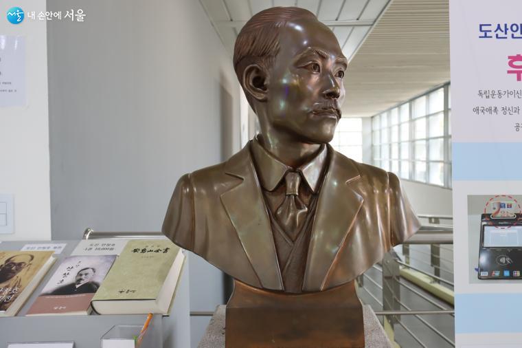 로비에 도산 안창호선생 흉상과 책자도 마련되어 있다 ⓒ정향선