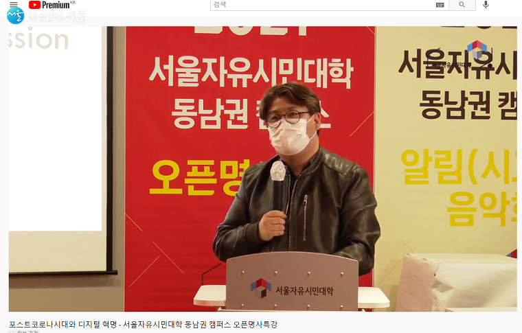 임시개방 첫 날, 필자도 사전에 메일과 SNS을 통해 전달받은 유튜브 링크를 통해 ‘포스트코로나 시대와 디지털 혁명’ 강의를 수강했다.