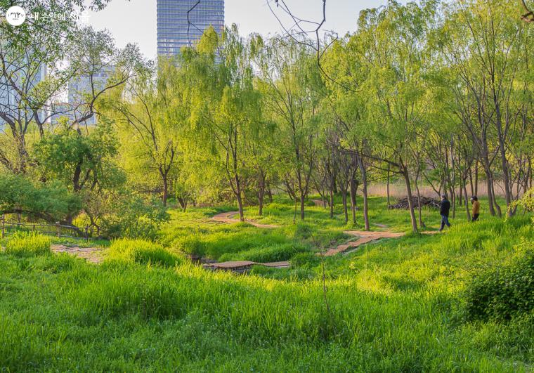 녹음으로 우거진 샛강 생태숲 산책로 ⓒ이한웅