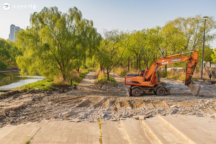 콘크리트 산책로 및 하천 개선 작업은 21년 11월까지 진행될 예정이다. ⓒ이한웅