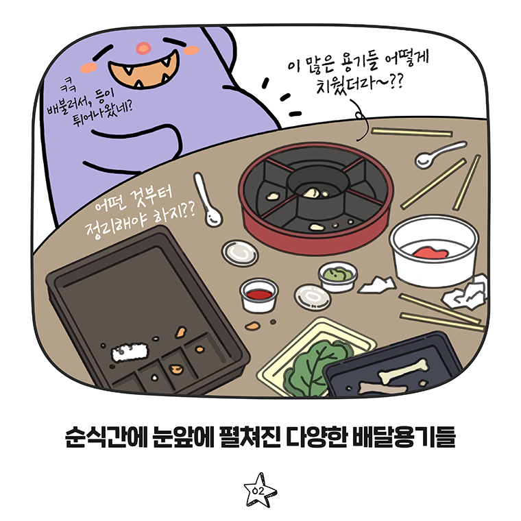 순식간에 눈앞에 펼쳐진 다양한 배달용기들