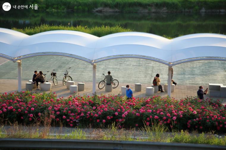 장미공원을 걸으며 내려다본 중랑천 쪽에도 장미가 만발했다. ⓒ이선미