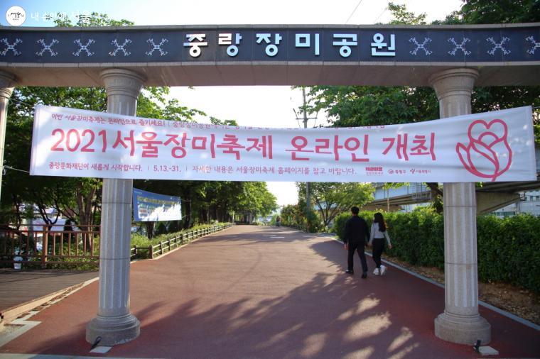 중랑장미공원에서는 ‘2021 서울장미축제’ 공식 프로그램이 없다. ⓒ이선미