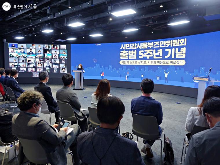 서울시 시민감사 옴부즈만위원회 출범 5주년 기념행사는 온·오프라인 동시에 진행되었다. 코로나19로 인해 전국 옴부즈만, 자치구 옴부즈만, 시민참여 옴부즈만, 일반시민 등이 화상으로도 함께 참여했다.